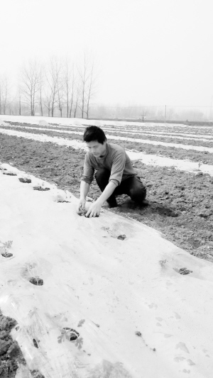左图:近年来,沈丘县老城镇积极开展农村土地有序流转,大力发展规模高效农业。图为该镇南关村村民抢抓农时移栽西瓜苗。