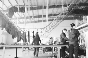 上图:项城市以产业集聚区为平台,强力实施项目带动、品牌带动、创新带动、服务带动战略,形成了以食品、医药为主导,纺织服装、皮革深加工为辅助的产业集群。产业集聚区成为当地经济跨越发展的增长极。图为工人在皮业生产车间内忙碌作业。