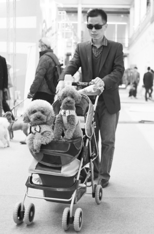 2015中国(北京)宠物文化节开幕 4月11日,两只泰迪犬坐在儿童车里。当日,为期三天的2015中国(北京)宠物文化节在北京蟹岛国际会展中心开幕。本届宠物文化节包括“王牌宠物课堂”“第7届WCF国际纯种猫展”“中国纯种犬——北京冠军展”等多个主题活动。 新华社发
