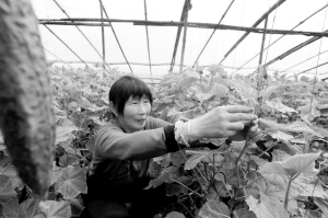 昨日,商水县东城办事处农户正忙着给大棚黄瓜吊蔓。该县充分发挥城郊优势,大力发展反季节、无公害蔬菜种植,亩均收入近万元,不仅丰富了市民的菜篮子,而且鼓起了菜农的钱袋子。