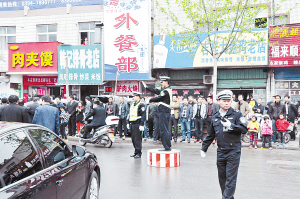交警服务“两会”,确保道路畅通。(记者 王亚辉 摄)