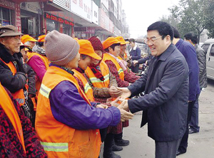 县委书记孙敬林看望慰问节日期间坚守在工作岗位上的环卫工人