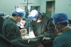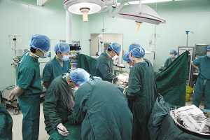 北京安贞医院成人心外科专家曹向戎主任医师在市中心医院为患者施行冠脉搭桥手术