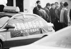 两会期间,川汇区出租车管理站组织所辖“雷锋车队”20余辆出租车免费接送与会代表政协委员,受到社会各界好评。(记者 沈湛 摄)