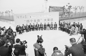 4月21日,河南日报《“四个全面”大家谈》活动栏目组走进全国粮食生产大县之一的商水县。在商水县30万亩高标准粮田活动现场,来自该县的干部、群众和种粮大户就“粮安天下,中原担当”主题畅所欲言,共瞻前景。记者 岳建辉 沈湛 摄