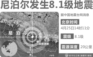 25日中午,尼泊尔遭遇81年来最强烈地震。截至目前,尼泊尔官方已确认1900余人在地震中遇难,约5000人受伤。