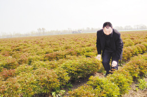 沈丘县大邢庄乡李营行政村村民王拥政承包了100亩地种植药材白芍,今年已经是第四个年头,目前长势良好。“我预计每亩能产3000多斤,这样算下来,一亩的毛利在1万元左右。”看到丰收在即,王拥政喜悦之情溢于言表。图为王拥政在田间查看白芍长势。