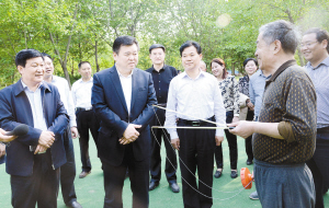 徐光一行又先后深入开发区人民广场、星龙华缘健身场所、融辉城健身活动中心、商水县夕阳红健身园、周口市体育中心等地实地察看各项体育健身运动设施建设进展情况,听取筹备工作情况汇报,了解场馆布展和开幕式准备情况。看到一件件崭新的健身运动器材、一块块新近完善提升的健身场地,特别是正在进行健身运动群众的一张张笑脸,徐光满意地点点头,并来到市民中间,与大家亲切交谈,和正在健身的市民打乒乓球、试用健身器材,共同分享健身带来的乐趣。徐光说,我市作为省十二届“老健会”的承办方,在时间紧、任务重、标准高、压力大的情况下,各相关单位按照市委、市政府的安排部署,讲政治、顾大局、做贡献,做了大量卓有成效的工作,可以说我市的全民健身场所功能得到了完善、形象得到了提升,市民参与健身活动的途径和选择更加方便多样,参与健身的热情更加高涨,市委对大家的工作是满意的。但是,我们还要看到,我市的全民健身工作与群众的需求还存在一定差距,必须进一步加大投入力度,建设好、管理好、使用好相关体育健身设施,使之能够更好地满足群众健身需求,服务百姓生活。