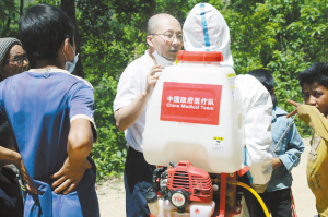 中国防疫队在尼泊尔地震重灾区开展防疫工作