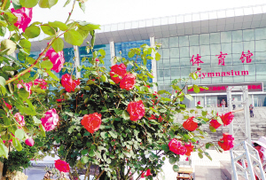 ③装扮一新的周口市体育馆。