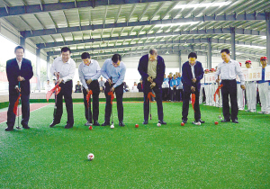 本报讯 (记者 李凤霞 宋馨 沈湛 文/图) 5月5日上午,“中国体育彩票杯”河南省第十二届老年人体育健身大会门球交流活动在周口体育中心门球馆举行。省老年体协主席马宪章,省体育局局长张文深,市委书记、市人大常委会主任徐光,市长刘继标,正市长级干部李绍彬,市人大常委会副主任、市老年体协主席游保峰,省老年体协副主席王玮等领导共同为活动开球(如图)。