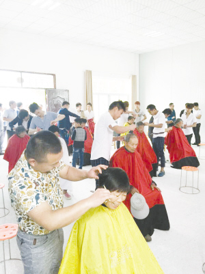 5月4日,团县委组织29家理发店50名理发师,在县老干部活动中心开展了庆“五四”免费为环卫工人义剪献爱心活动。200多名环卫工人在理发师的精心打理下发型焕然一新,精神抖擞。(团轩 摄)