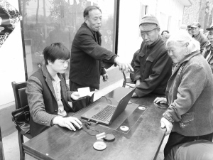 近日,商水县黄寨镇对全镇24个行政村已领取新型城镇养老保险养老金的老年人进行资格认证,将身份证、户口簿与本人进行对照、审核,做到不漏查、不错查。李斌斌 摄