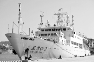 “东方红2号”海洋综合调查船赴南海进行科学考察 5月10日,“东方红2号”调查船在国家海洋局青岛海洋科学考察基地码头整装待发。当日,“东方红2号”海洋综合调查船从国家海洋局青岛海洋科学考察基地启航,赴南海进行为期两个月的科学考察。新华社记者 张建松 摄