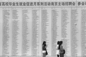 江苏南京举办大学生专场招聘会 5月10日,在南京国际展览中心,大学生在浏览用人单位招聘信息。当日,2015年江苏省高校毕业生就业促进月系列活动南京主场招聘会在南京国际展览中心举行,千余家用人单位提供了3万多个就业岗位,引来近4万名大学生前来洽谈应聘。新华社发