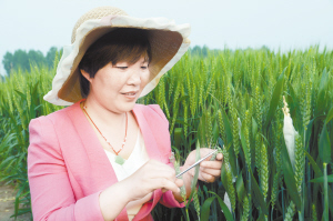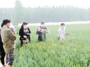 下图:昨日,项城市农科所技术人员正在进行小麦杂交授粉。连日来,该所抓住小麦授粉期的晴好天气,组织技术人员开展杂交授粉实验,确保小麦单产同步提高。(蒋树保 摄)