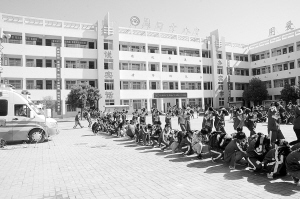 昨日,市教育局在周口市十八中举行安全疏散演练,该校800多名学生参加了此次活动。这次安全演练不仅提高了学生的应急反应能力和自救能力,而且培养了学生听从指挥、团结互助的品德。据了解,市教育局、人防办、公安局、地震局、安监局、消防支队及市直各中小学校长参加了此次观摩演练。(记者 朱鸿 摄)