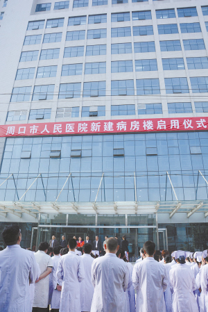 本报讯 4月24日,周口市人民医院新病房楼举行启用仪式,标志着这一重点民生工程即日起正式投入使用(左图)。新病房楼的投入使用,将大大改善人民群众的就医环境,成为保障人民群众医疗健康的一支重要力量。