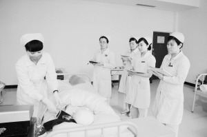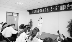 在5·12国际护士节到来之际,周口市儿童医院的护士们进行技术比武,进一步提高急救护理的水平和质量。(张东旭 摄)