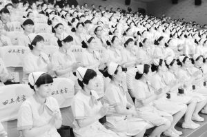 5·12国际护士节当天,周口市第五人民医院的护士长们在参加“如何做一名合格的护士长”演讲大赛。 (李宏平 摄)