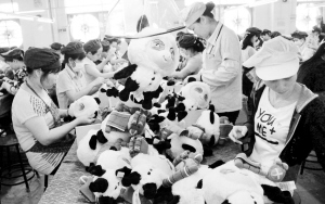 广西各地就业呈现“凤还巢” 广西灵山县妇女在生产外销欧美的儿童玩具(4月29日摄)。近年来,广西各地妇女就业呈现“凤还巢”局面,不少在广东、福建、浙江等地打工的人员,利用所学技能回乡创业。抓住这一契机,广西投入十几亿元建设200多个“巾帼科技示范基地”,为广大妇女创业、就业搭建平台。新华社发