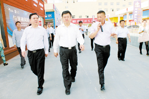 周口市委书记、市人大常委会主任徐光(中)一行在项城市委书记黄真伟(左)的陪同下观摩项目建设。