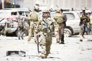 阿富汗喀布尔机场附近发生爆炸 5月17日,士兵在阿富汗首都喀布尔发生爆炸的现场查看。阿富汗首都喀布尔机场附近17日发生一起自杀式爆炸袭击,造成至少3人死亡、18人受伤。 新华社发