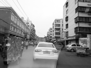 商户在六一路上私拉乱扯的电线垂落,距离地面不足两米,严重影响车辆通行。