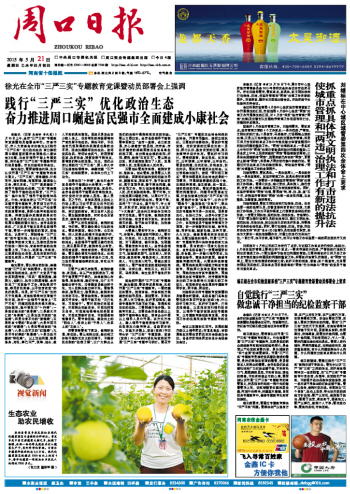 徐光指出,要深刻领会内涵,充分认识开展“三严三实”专题教育的重大意义。“三严三实”,简洁凝练、朴实无华,指向明确、寓意深刻,强调修心正身、律己求实。“三严”高度凝炼了领导干部的政治品德,“三实”精准概括了领导干部的政治职责,“三严三实”集中体现了领导干部的精神品质。中央、省委决定以“三严三实”为主题开展专题教育,是贯彻习近平总书记重要讲话精神、落实从严治党要求的重要举措,是深化教育实践活动成果、持续加强作风建设的具体行动,也是我们优化政治生态、加快实现周口崛起的强大动力。全市各级党组织、广大党员干部尤其是各级领导干部,要进一步增强党的意识、党性观念,认真学习、深刻领会“三严三实”的丰富内涵,充分认识深入开展专题教育的重大意义,迅速把思想和行动统一到中央、省委和市委的决策部署上来,下决心、动真格、求实效,以高度的政治自觉、思想自觉和行动自觉扎实深入开展好“三严三实”专题教育。