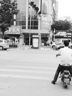 位于周口市七一路与文明路交叉口的一块路牌损坏严重,路名也被一家酒店的广告遮挡住了。
