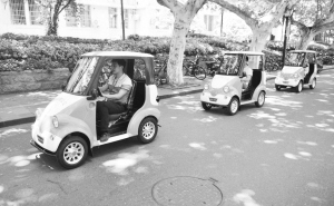 校园微公交现身浙江大学 5月21日,校园微公交行驶在浙江大学校园。近日,由浙江大学ESE工程中心研发的校园微公交开始在浙大校园投入试运行。这款校园微公交车采用锂电池供电,最高时速25公里,在满电情况下可行驶100公里。新华社发