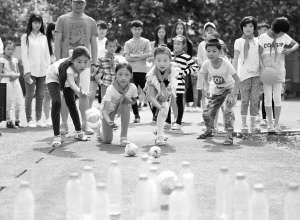安徽亳州:留守儿童大学校园欢乐迎“六一” 5月24日,在安徽省亳州职业技术学院,几名留守儿童在玩“保龄球”游戏。当日,安徽省亳州职业技术学院邀请谯城区牛集镇安溜小学50多名留守儿童来到大学校园,开展“放飞梦想迎六一”主题活动。大学生与孩子们一起进行了各种趣味游戏,让孩子们提前过了一个开心的“六一”儿童节。新华社发