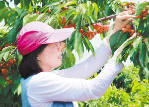 昨日,一位市民正在扶沟县包屯镇小杂果园区内采摘樱桃。近年来,该镇积极引导群众发展名、优、特小杂果种植业,小杂果种植业已成为促进当地农民增加收入的一种有效途径。 (黄金峰 陈学政 摄)
