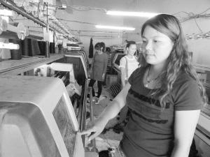 5月24日,商水县巴村镇上城村返乡农民工党强呛和工人一起操作电子编织机。党强呛返乡后创建了毛织厂,吸收村里30多位村民进厂工作。近两年来,该县通过实施“回归工程”,使3000多名“金凤凰”归巢兴业,并为6万名多农村剩余劳力提供了就业岗位。(乔连军 摄)