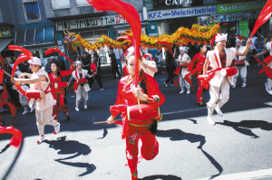 柏林举行2015文化狂欢节大游行 5月24日,在德国柏林,来自中国的安塞腰鼓表演队在柏林文化狂欢节上参加游行。当日,柏林文化狂欢节大游行在柏林举行,数千名来自世界各地的狂欢者加入到游行的队伍中。柏林自1996年起举办文化狂欢节,展现柏林作为世界大都市多元文化的丰富性与包容性。 新华社发
