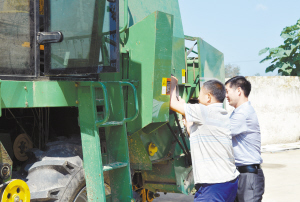 “三夏”大忙在即,扶沟县农机手在技术人员的指导下对农业机械进行检修维护,确保夏收、夏种顺利进行。图为练寺镇郭寨村农机手正在检修收割机械。