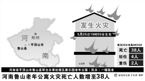 据新华社郑州5月26日电 记者从河南省平顶山市政府获悉,5月25日晚发生火灾的鲁山县康乐园老年公寓已有12名相关责任人被控制,还有3人正在查找落实。