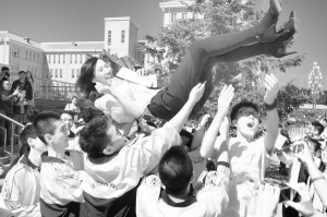 毕业典礼谢师恩 6月4日,在黑龙江省牡丹江市第一中学,学生在毕业典礼上将老师托起,表达对老师的感谢。当日,牡丹江市第一中学举行一年一度的高三学年毕业典礼。 新华社发