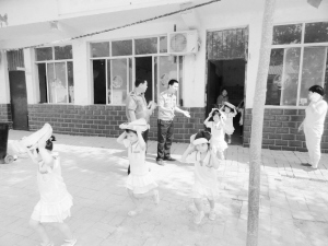 鲁山县一老年公寓特大火灾事故发生后,商水县公安局舒庄派出所组织民警对全乡中小学校、幼儿园、民营企业、网吧等人员集中的地方进行消防、电路等安全检查,发现隐患,现场整改。同时,组织民警到学校、幼儿园对孩子们进行逃生演练。图为该乡中心幼儿园的孩子们在民警的指导下进行逃生演练。