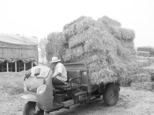 6月5日,商水县魏集镇菇农正在收购小麦秸秆。该镇商会以每斤0.1元的价格大量收购小麦秸秆,为当地种植双孢菇的农民积累了原料,同时也销往外地造纸厂。(苏建广 摄)