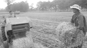 昨日,太康县老冢镇刘寨村李丙强叔侄俩正在田地里给麦秸打捆。32岁的李丙强几年前放弃外地10万年薪的职位,在老家建起养羊场,如今已有上千只规模。为了给羊贮备草料,几天前,李丙强购置了麦秸打捆机,帮助周边群众收麦秸,解决了秸秆焚烧问题,可谓一举两得。(记者 刘俊涛 摄)