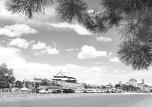 北京:蓝天白云风光好 蓝天白云下的北京长安街(6月11日摄)。6月11日,在送走了雷阵雨后,北京迎来晴好天气,蓝天白云下的京城处处风光绮丽。新华社记者 罗晓光 摄