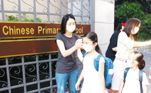 韩国2431所学校因中东呼吸综合征疫情停课 6月11日,在韩国首尔的汉城华侨小学,老师对学生进行入校体温检查。当日,根据韩国教育部统计,韩国全国共有2431所学校停课。