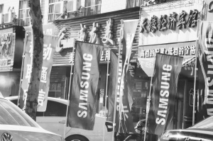 五一南路一商家如此促销,把人行道挡了个严严实实,让行人如何通过?