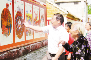 近日,项城市注重开展核心价值观教育,利用广场舞、秧歌、文化墙等多种群众喜闻乐见的形式,丰富教育内涵,深受群众欢迎。图为秣陵镇西陈村群众驻足文化墙前观看家庭美德彩图。凡景锋 摄