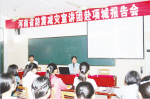 日前,河南省防震减灾宣讲团走进项城,开展宣讲活动,深受群众欢迎。图为省地震局专家在红旗学校为学生宣讲防震减灾知识。凡景锋 摄