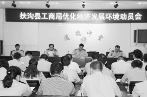 近日,扶沟县工商局召开优化经济发展环境动员会,要求全系统工作人员立足工商职能,多措并举优化经济发展环境,为全县经济发展注入正能量。卢付昌 摄