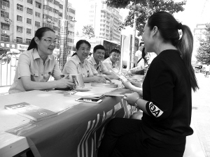 6月13日,川汇区人民法院党组书记、院长刘俊荣(左二)正在耐心回答市民提出的有关房产纠纷的问题。为使全社会广泛参与“平安川汇”建设,该院院长带领各庭长及法官12人,利用周末休息时间,在市区五一广场前设置法律咨询台,向过往群众发放法律宣传手册600余份,现场提供法律咨询40余人次,进一步增强群众学法、懂法、守法意识,受到群众广泛好评。