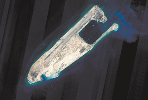 中国在南沙群岛部分驻守岛礁上的建设将于近期完成陆域吹填工程 经向有关部门了解,中国在南沙群岛部分驻守岛礁上的建设将于近期完成陆域吹填工程。这是完成陆域吹填工程后的永暑礁卫星图片。