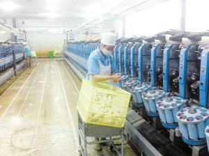 6月12日,在周口市远天棉业有限公司生产车间,工人们正在生产线上忙碌。这个由淮阳县转业军人张作忠创办的纱厂,十多年来,由小到大,产品目前远销浙江、江苏、广州等地,年产值达1.5亿元,连续多年荣获淮阳县纳税十强企业。